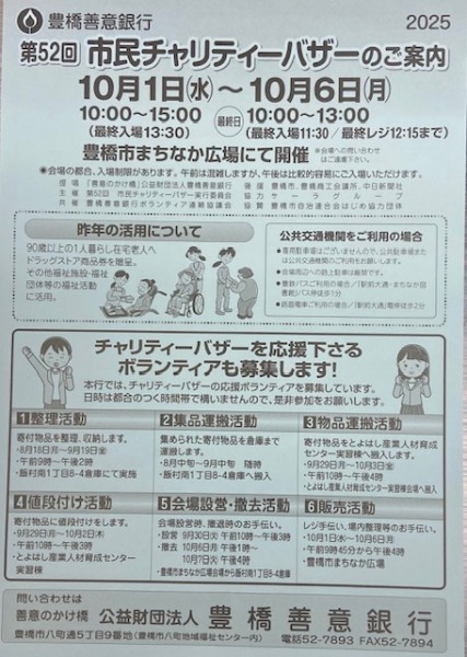 - 2024.11.08:豊橋善意銀行60周年協賛 第51回市民チャリティーバザー決算報告